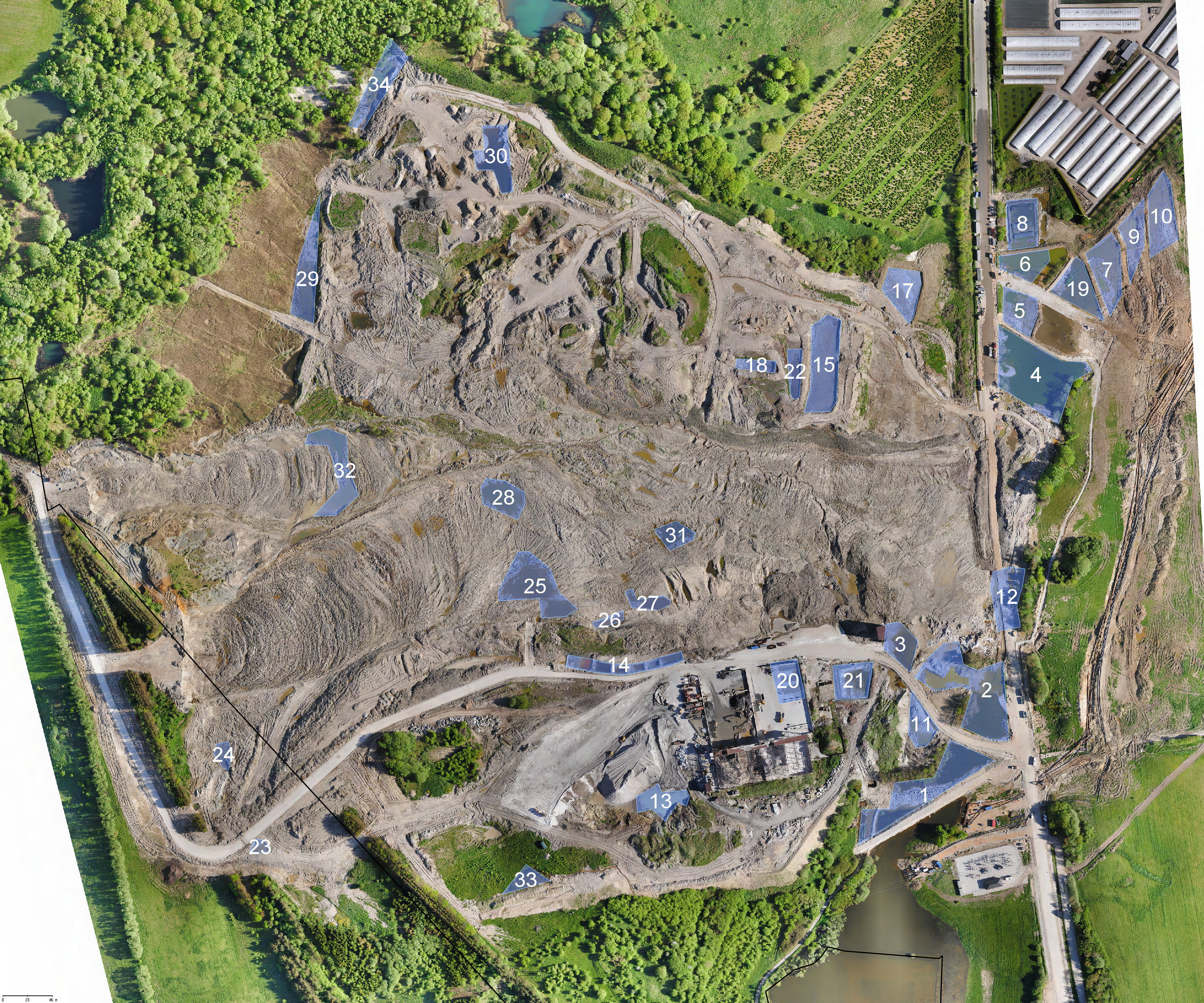 Langs med prøvegravningen fra syd til nord på Gl. Århusvej er der nu fjernet 30-40.000 tons jord, som er brugt til at dække fillerbjerget af, og som dermed ligger i midlertidigt depot på virksomhedens areal. Sandsynligvis er omkring halvdelen af jorden fra skredfronten kørt tilbage til Nordic Waste arealet.