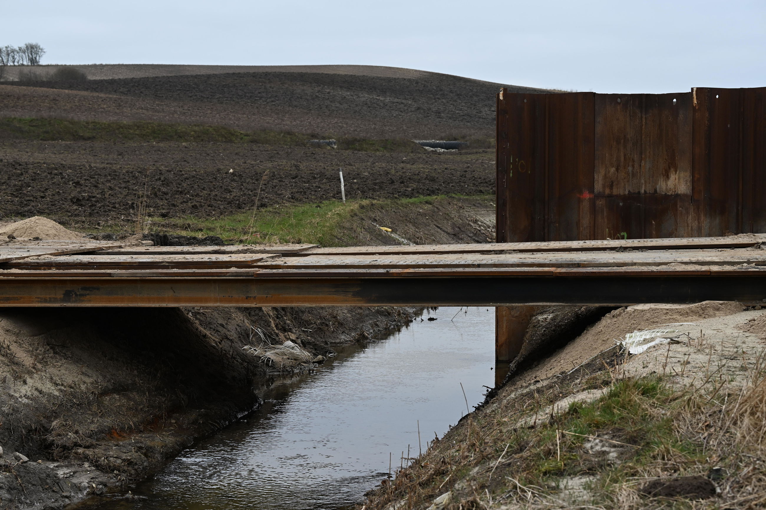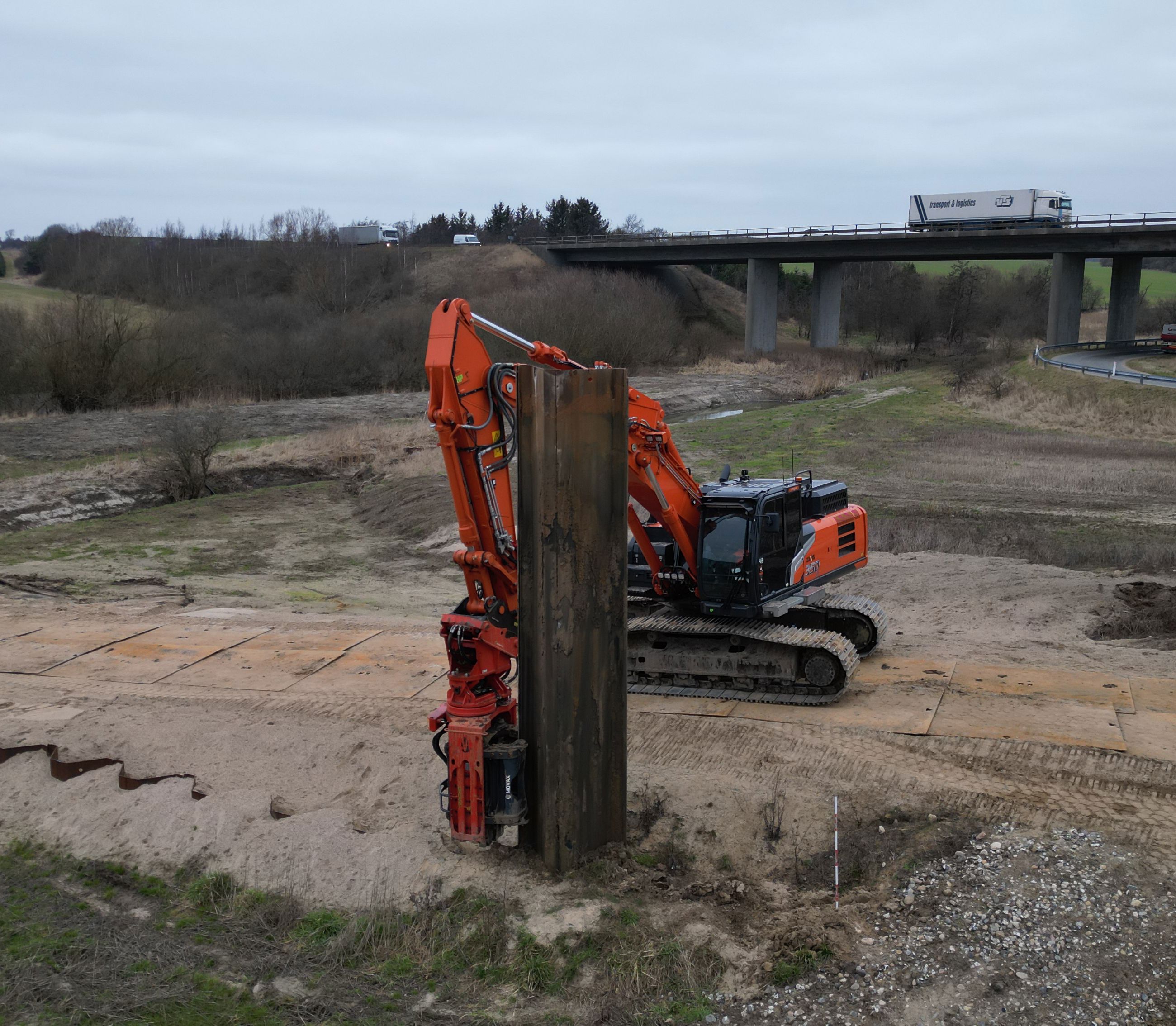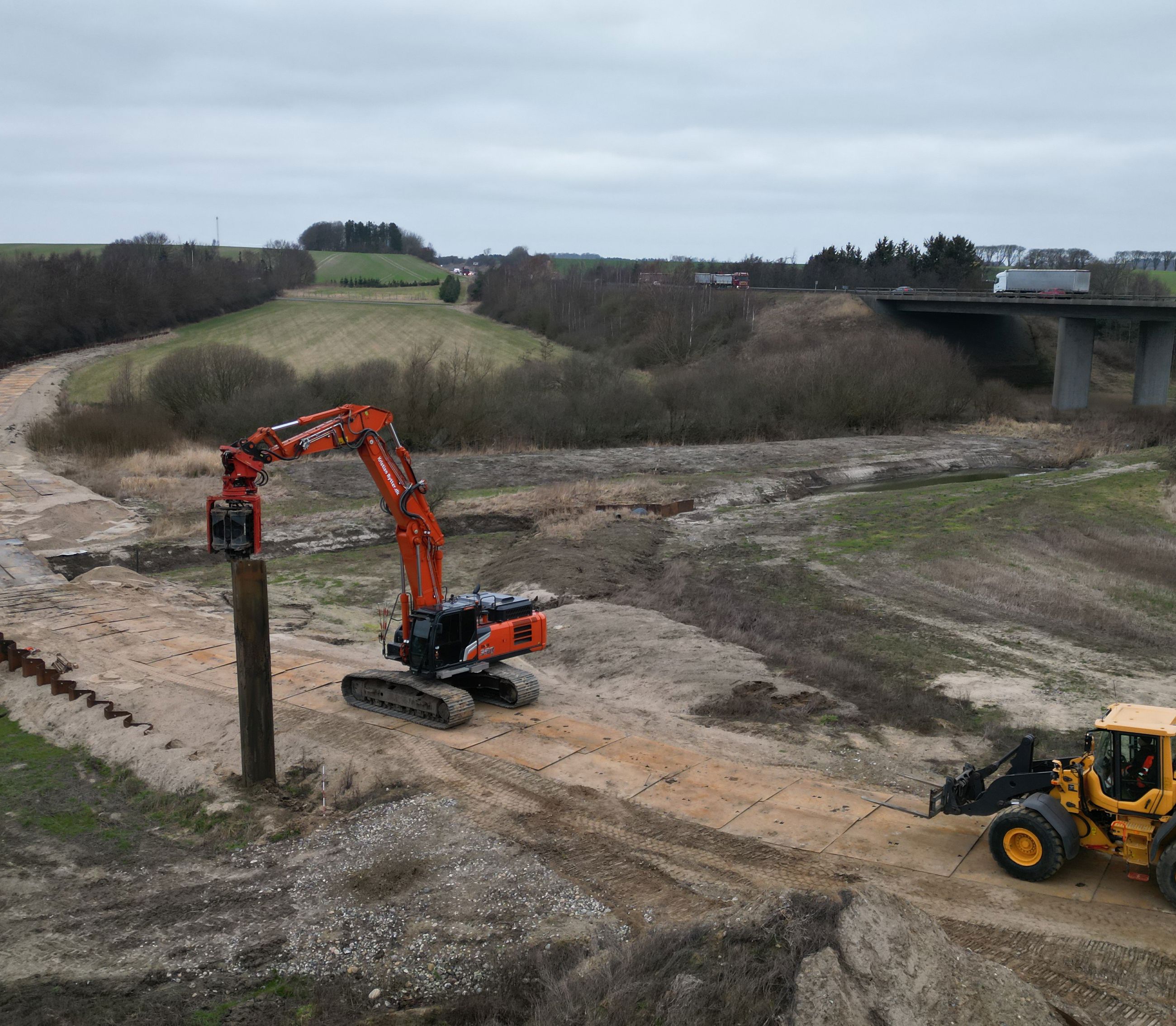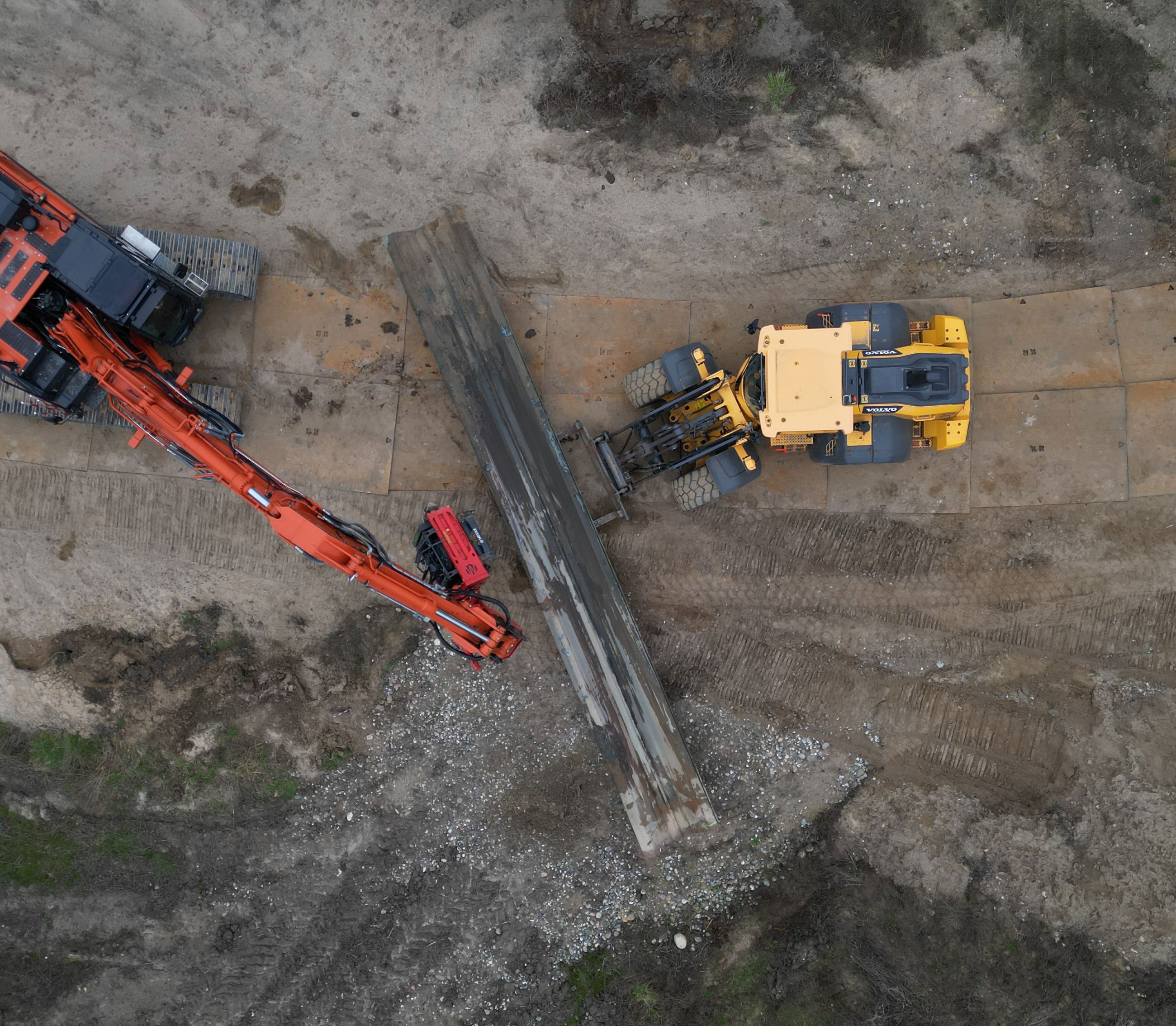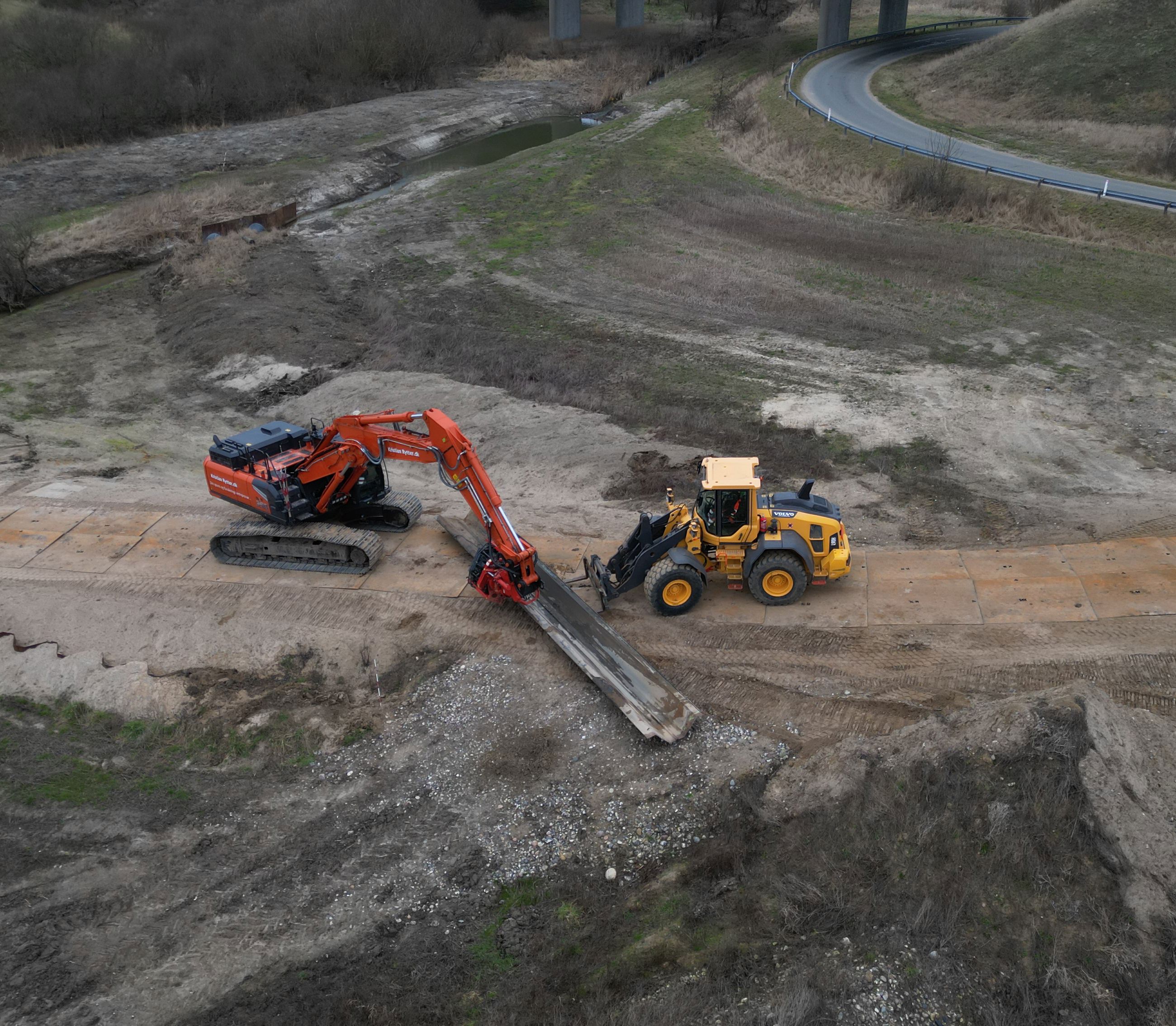 - De begynder med at klargøre området til kørsel, ved blandt andet at lægge køreplader ud