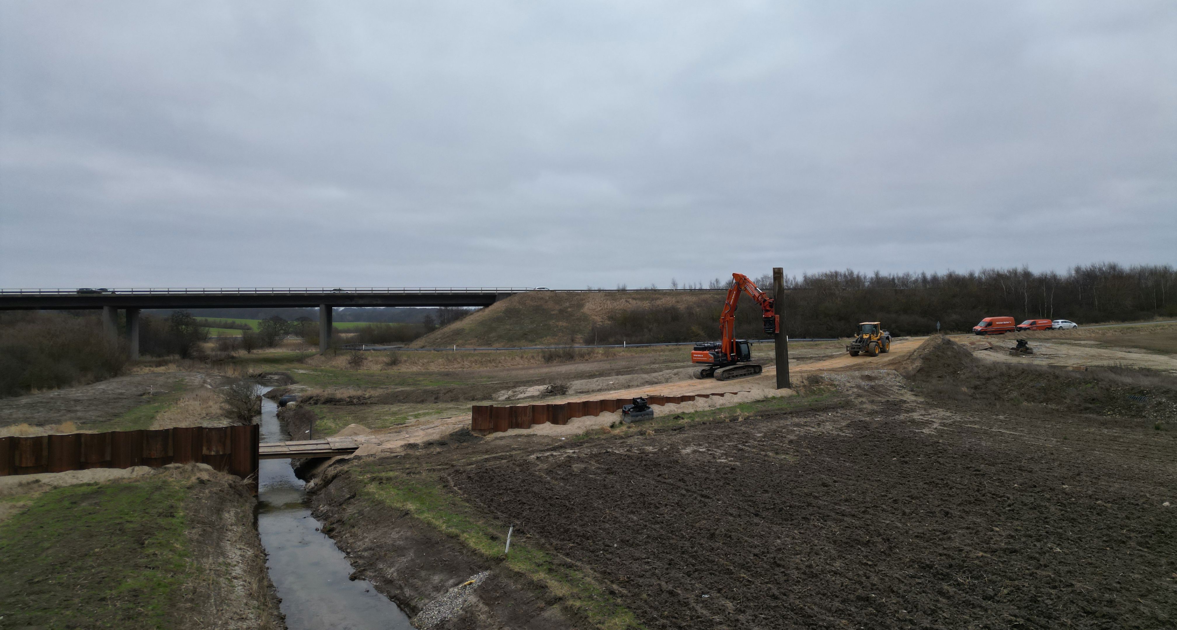 Arbejdet går ud på at grave det spunsbyggeri (en beskyttende væg) fri, der er placeret i det sidste beskyttelsesbassin ved E45. Spunsbyggeriet har ikke længere nogen funktion, da åen er sluppet helt fri.