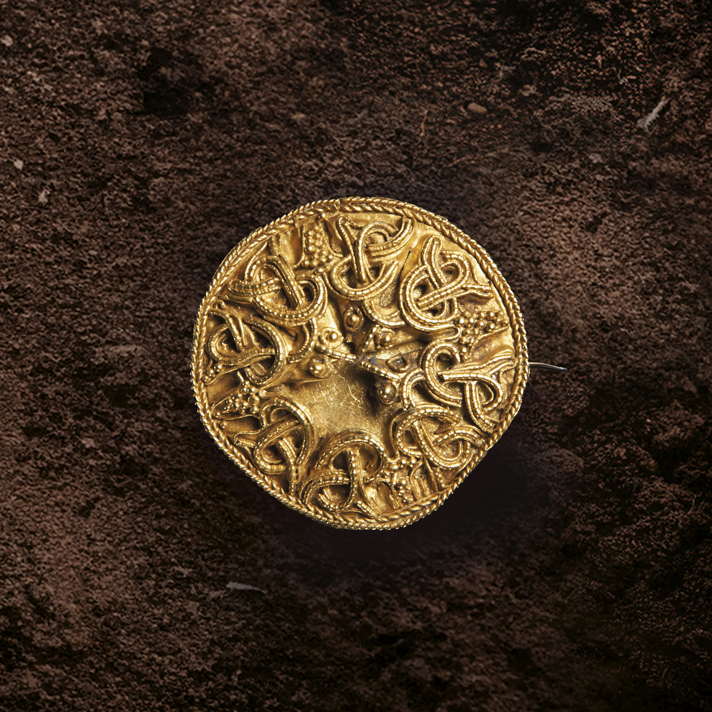 Guldspændet stammer vikingetiden omkring år 850-1000 og er formentlig fundet i en gravhøj uden for Randers. Spændet er sirligt dekoreret med fire dyrehoveder med kuglerunde øjne. Det er et eksempel på mesterligt guldsmedehåndværk.
